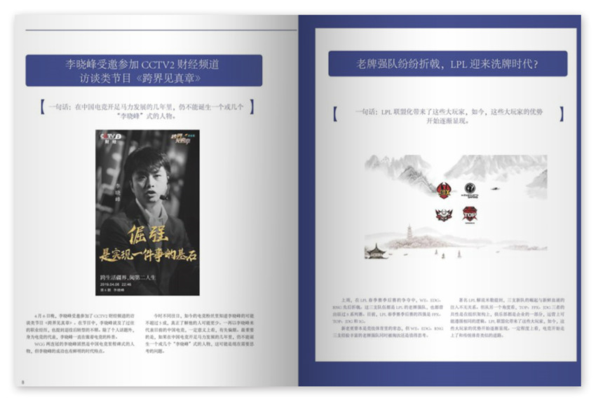 《電子競(jìng)技》(月刊)創(chuàng)刊于2005年,多年來(lái)雜志內(nèi)容及形式方面與時(shí)俱進(jìn),并以其形式和內(nèi)容的豐富性及多樣性,贏得了不同階層讀者的喜愛(ài)與擁護(hù)。以信息產(chǎn)業(yè)、游戲產(chǎn)業(yè)、電子競(jìng)技產(chǎn)業(yè)為平臺(tái),以新聞、評(píng)論為導(dǎo)向的商業(yè)雜志;第一時(shí)間報(bào)道產(chǎn)業(yè)界的重大事件和人物;以調(diào)查見(jiàn)深度,以分析見(jiàn)獨(dú)家,以商業(yè)故事見(jiàn)功力。