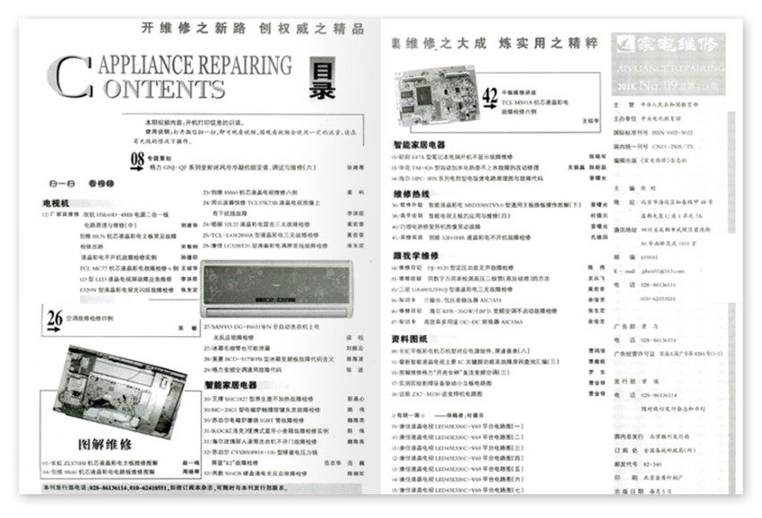 《家電維修》雜志收錄了很多大學(xué)者的文章,內(nèi)容有深度,且有新鮮感,讀了之后,增加了許多新知。雜志著重理論聯(lián)系實(shí)際,提高與普及并重。我是推薦閱讀和收藏的。